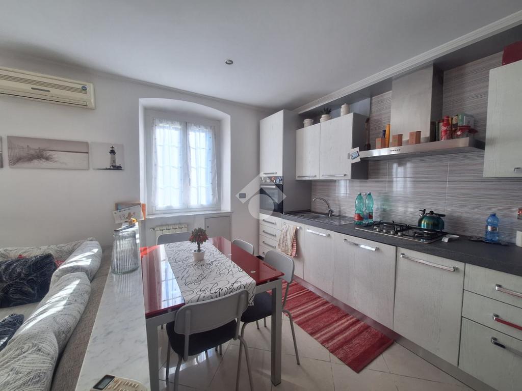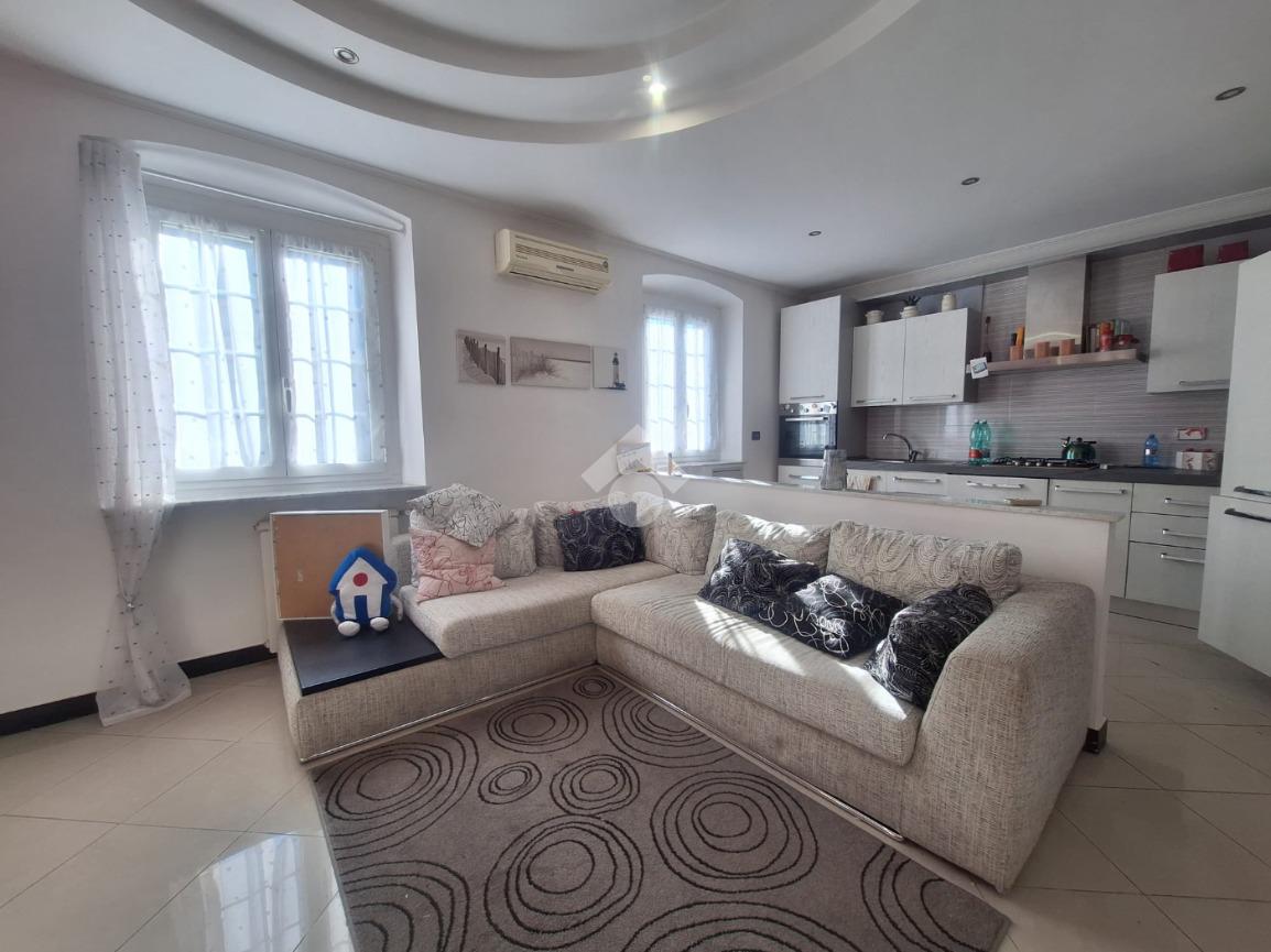 L'immobile si apre con ingresso direttamente in soggiorno dove a vista troviamo la cucina abitabile. L'ambiente ampio e luminoso dispone di decorazione a soffitto in cartongesso con faretti per l'illuminazione. Il piccolo disimpegno consente l'accesso al bagno completo di sanitari e box doccia. La zona notte è composta da camera matrimoniale e camera singola.