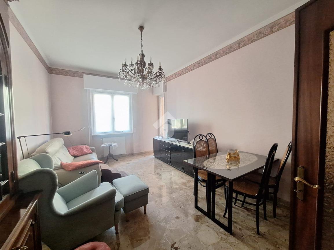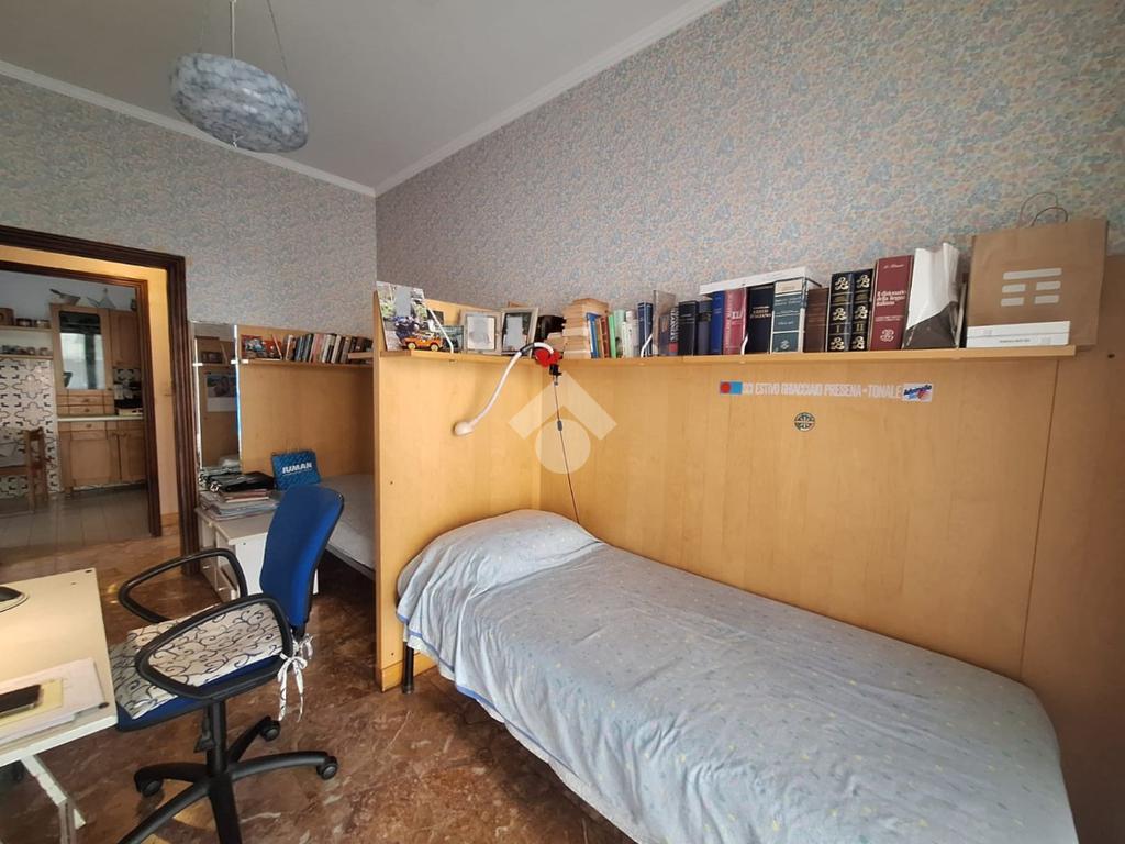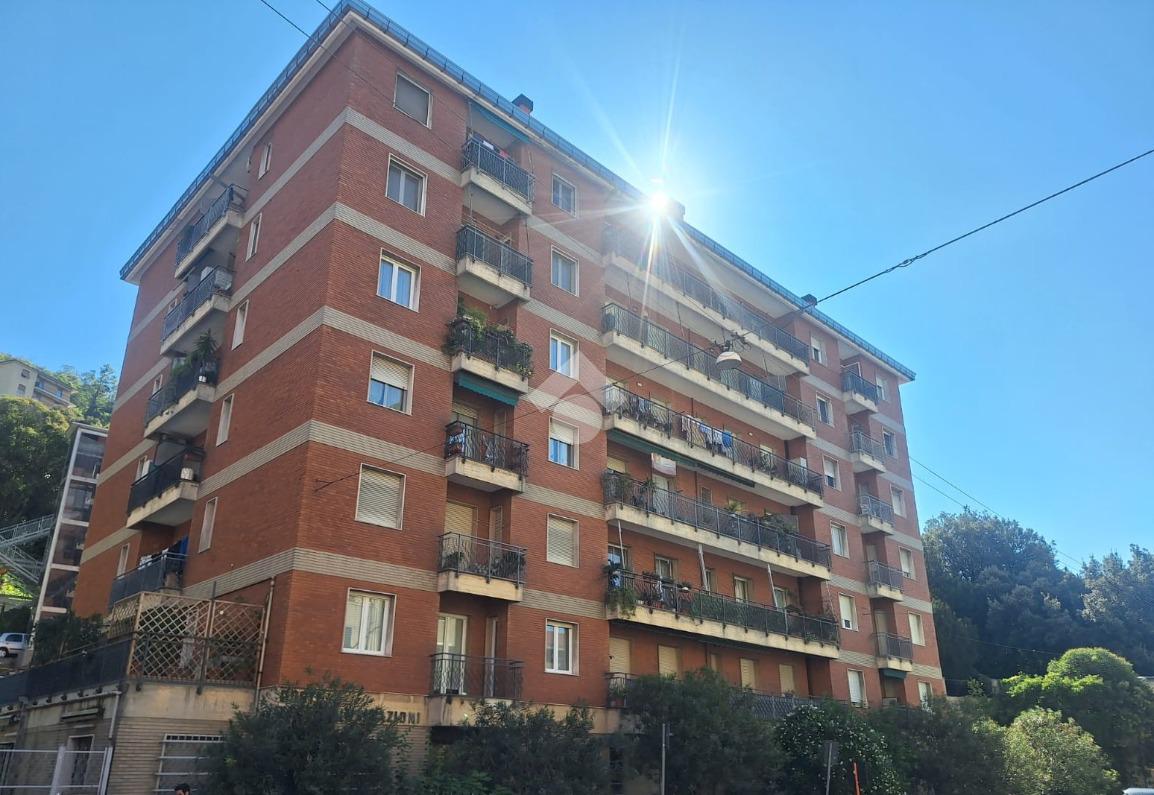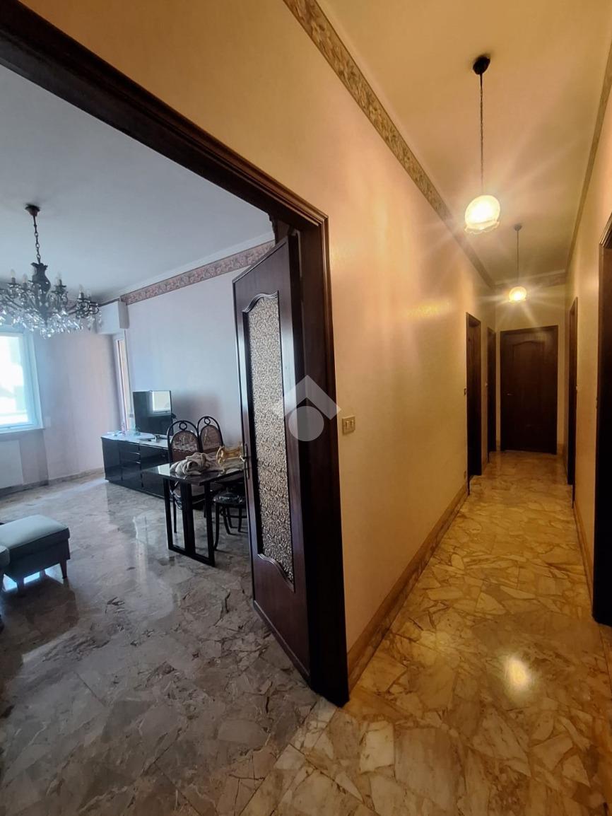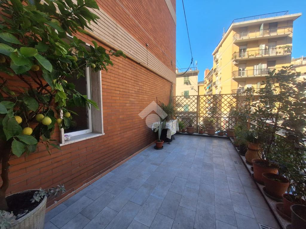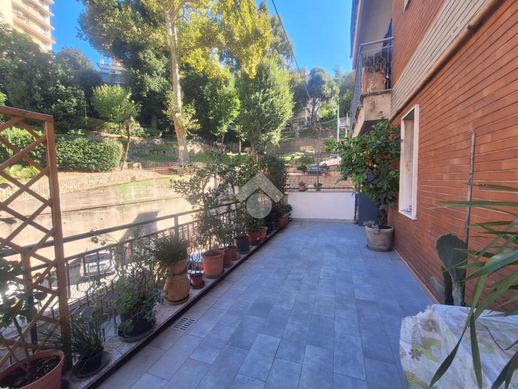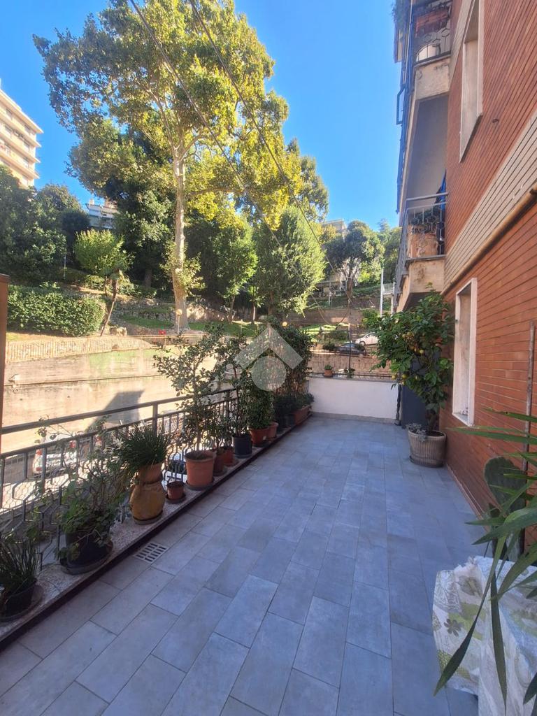 Appartamento posto al primo piano fuori terra con vano di ingresso, arredabile, collegata al corridoio, dal quale si ha accesso a tutte le stanze. Il salone, caratterizzato da porta a doppio battente con finiture in vetro a cattedrale consente l'uscita sul balcone. A seguire la zona notte caratterizzata da due spaziose camere. L'alloggio dispone di doppi servizi, il bagno principale è finestrato e con vasca mentre quello secondario è dotato di lavabo, wc e box doccia. Dalla cucina abitabile si ha l'uscita sul terrazzo al piano vivibile di ben 30 mq dove è possibile godere di momenti di relax all'aria aperta. Grazie all'esposizione, nonostante l'abitazione sia ad un piano comodo, l'appartamento gode di ottima luminosità ed esposizione riservata poichè non vi sono altri palazzi che affacciano direttamente sul terrazzo. Da qui si può godere inoltre del verde presente nel parco dove si trova l'istituto scolastico Gaslini.