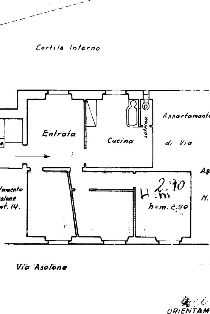L'ingresso è in sala alla genovese con finestra, da qui si accede alle tre camere da letto di cui due matrimoniali ed una cameretta singola. La cucina è abitabile e da questa si accede al bagno con piatto doccia, sanitari e piccola finestra.